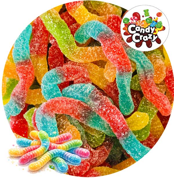 Vers de terre sucrés halal DAMEL, bonbons gélifiés colorés enrobés de sucre et aux saveurs fruitées. Parfaits pour un assortiment gourmand et festif.